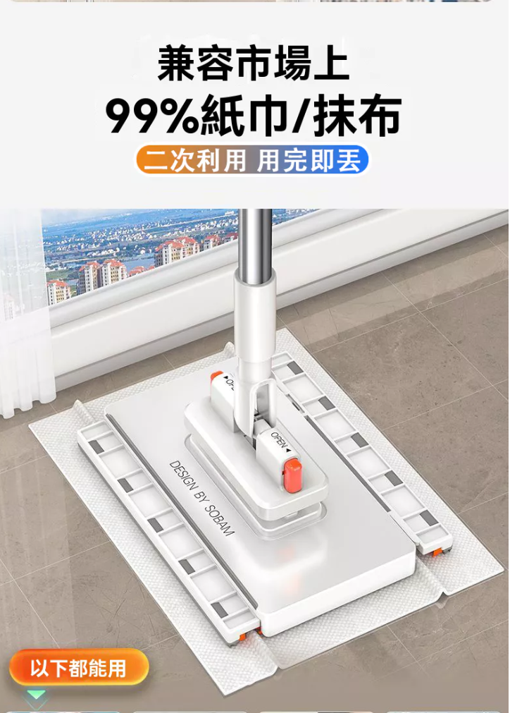 4分鐘前【台灣爆紅款 現貨秒發】3秒快速換布,免手洗超衛生,360度旋轉拖頭,深入縫隙無死角,磁磚、木地板都適用! - 【嘗鮮套餐】2入組-NT$980